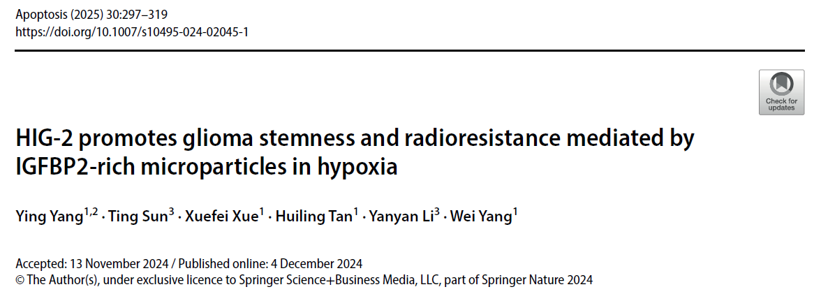 - 胶质瘤研究新发现 |《Apoptosis》(2025 IF:8.1,JCR Q1)解读:HIG-2如何通过富含IGFBP2的微颗粒重塑胶质瘤干细胞生态位2026-04-02 今天推荐的是由苏州大学等单位,于2025年2月发表于Apoptosis期刊的一篇研究论文。该研究揭示了缺氧诱导基因2(HIG-2)在胶质瘤干细胞(GSCs)中的关键作用:它不仅能促进脂滴堆积,更通过结合受体FZD10激活Wnt/β-cate...READ MORE