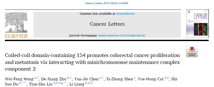 - 卷曲螺旋结构域新发现 |《Cancer letters》(2025 IF:10.1,JCR Q1)解读:CCDC154——结直肠癌中新的促癌因子与潜在预后标志物2026-04-03 结直肠癌(CRC)作为全球常见的消化道恶性肿瘤,其发病率和死亡率居高不下。尽管近年来靶向治疗与免疫治疗取得了长足进步,但复发和转移仍是导致患者死亡的主要原因。寻找新的分子标志物和治疗靶点,对于改善患者预后具有重要意义。2023年12月,复旦...READ MORE